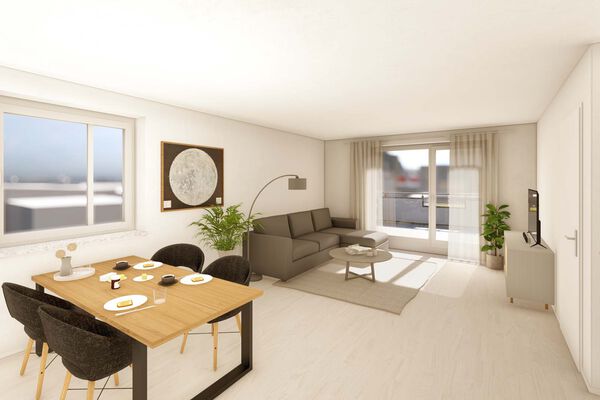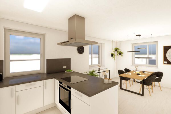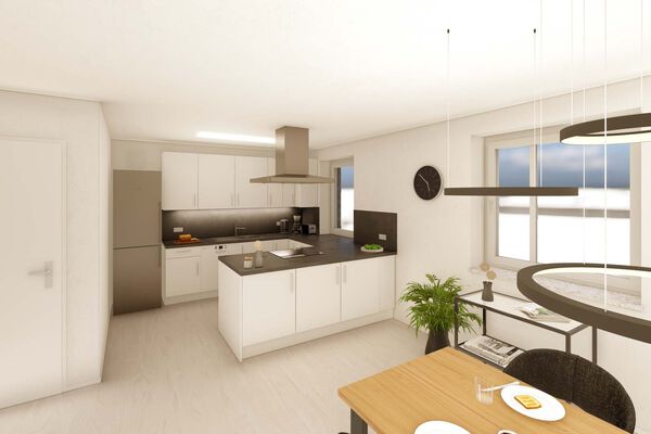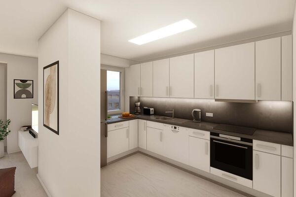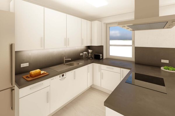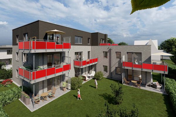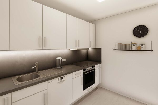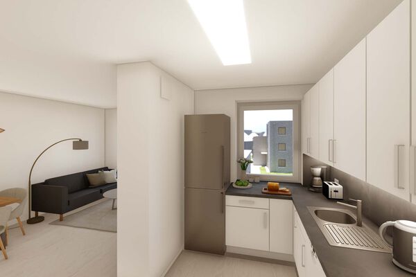 Außerdem sind die Wohnungen bereits mit einer Einbauküche ausgestattet, sodass die zukünftigen Mieter und Mieterinnen, sich ihren Wunsch entsprechend, nur um einen Kühlschrank und Geschirrspüler kümmern müssen. Jede Wohnung im Erdgeschoss verfügt über eine Terrasse und in den höheren Geschossen über einen Balkon bzw. eine Dachterrasse. Für Stauraum ist außerdem gesorgt, denn die Wohnungen verfügen jeweils über einen Abstellraum in der Wohnung und einen Kellerabteil im Keller.
